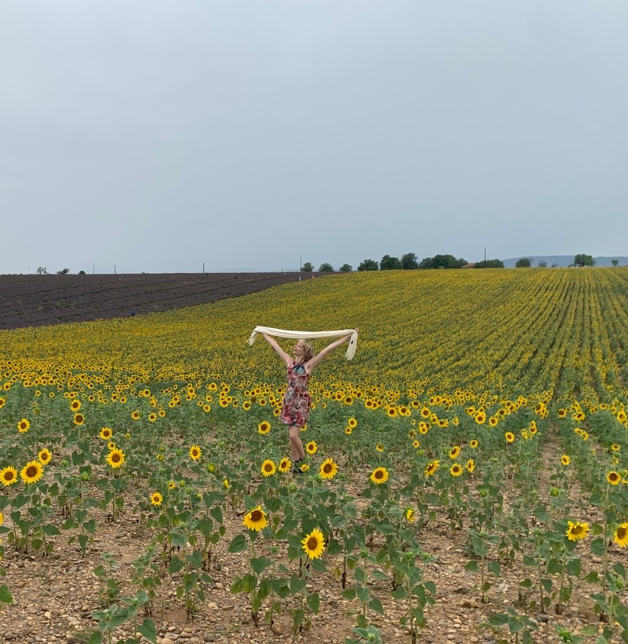 Our first stop was the lavender and sunflower field. It was a bit rainy this day so there weren’t a lot of other people around. There were a lot of signs though, telling us to watch out for tourists crossing the road.